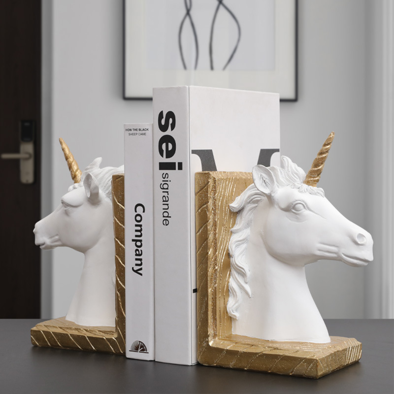 Product information : Material: synthetic resin Process : Resin process Category: book support Hanging form: ornament Color: unicorn bookend-white, unicorna bookend-gold